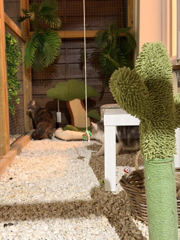 • Chambres confortables : Des espaces spacieux et privés pour que votre chat se sente à l’aise, avec des lits moelleux et un environnement calme.