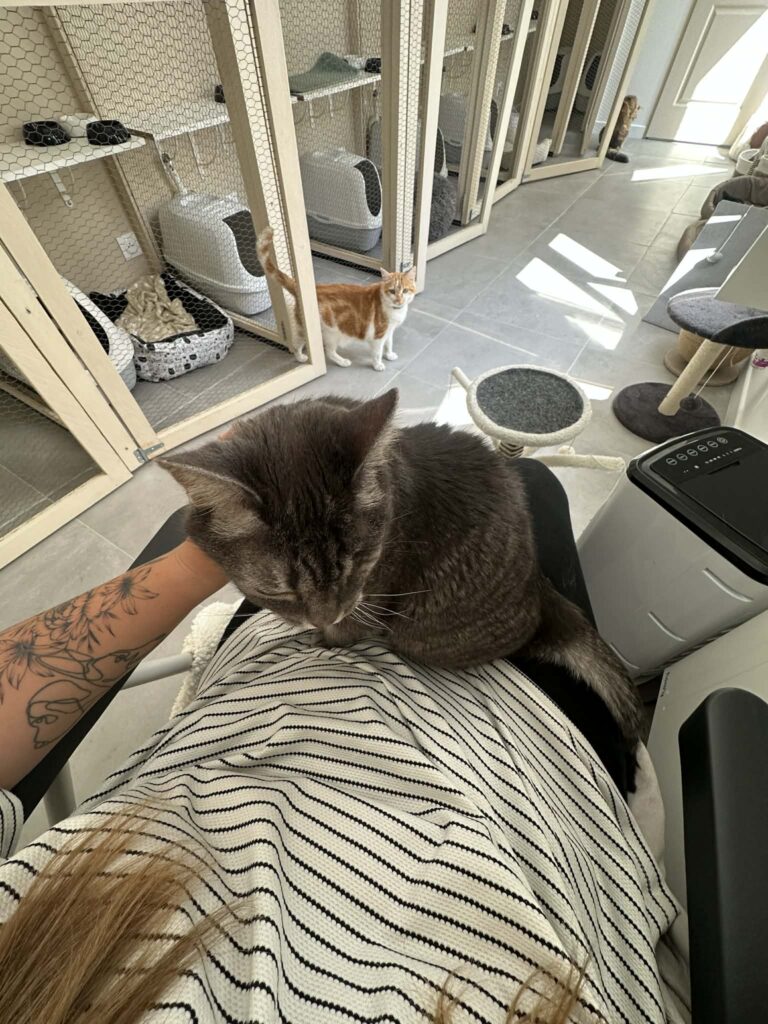 • Soins et hygiène : Nous nous occupons de la litière, du toilettage léger et des soins de base pour garantir le bien-être de votre chat pendant son séjour.